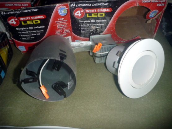 Hi, I am selling Guaranteed As Described,2 Lithonia Lighting Ceiling 4″ White Gimbal LED & 2 6″ Waver Downlight Fixture, In Very Good Condition. This is a Lot of 4 Ceiling lights, 2 of each as in the title. The overall condition is excellent, just the package is dirty, they are tested and work. Please look at all the pictures.