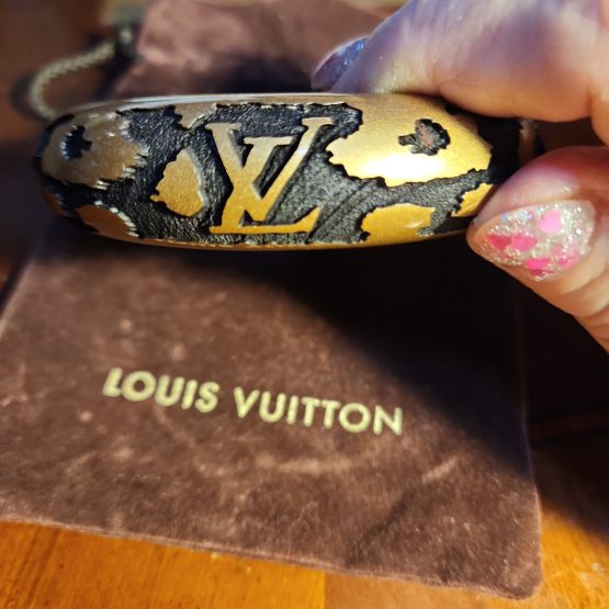 Hi, I am selling Guaranteed As Described, Authentic Louis Vuitton Bangle Leo Monogram Leopard Wood Jaguar Bracelet Ladies, In Excellent Condition.