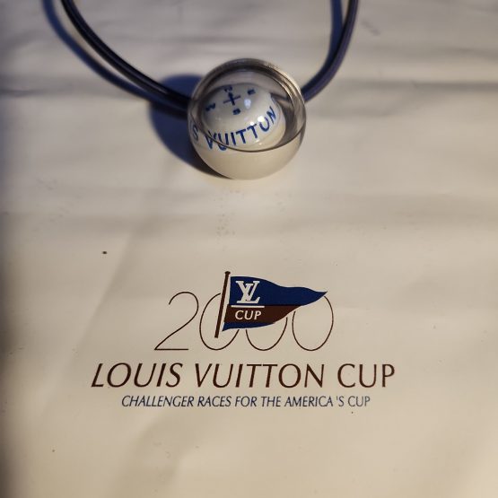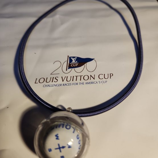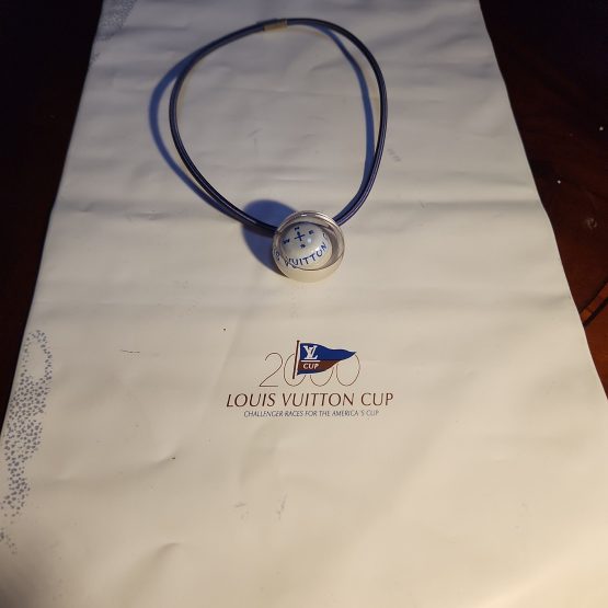 This is an authentic rare Louis Vuitton American Cup Year 2000 Compass choker really unique. A great collector’s piece for any Louis Vuitton lover. This beautiful Louis Vuitton necklace is lightly used and well taken care of, has also the right amount of water where the compass moves freely. Includes Louis Vuitton the plastic caring bag. The plastic bag is marked Louis Vuitton Cup 2000 with visible marks on a bag looks like rubbing. Otherwise no holes still very cute and is included, with this beautiful necklace, which is one of a kind in its style.