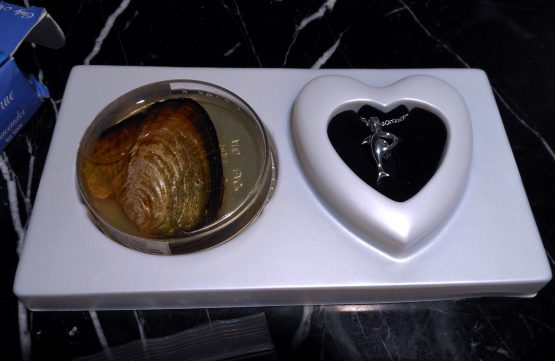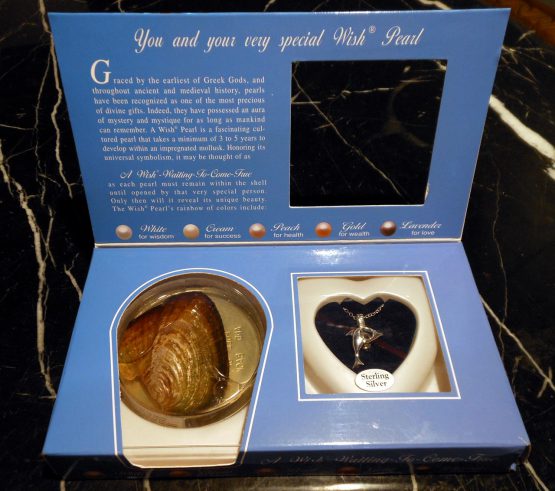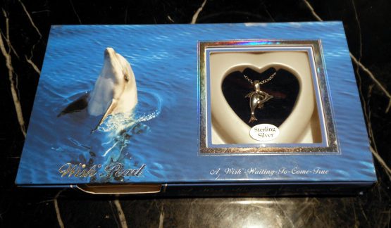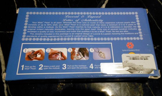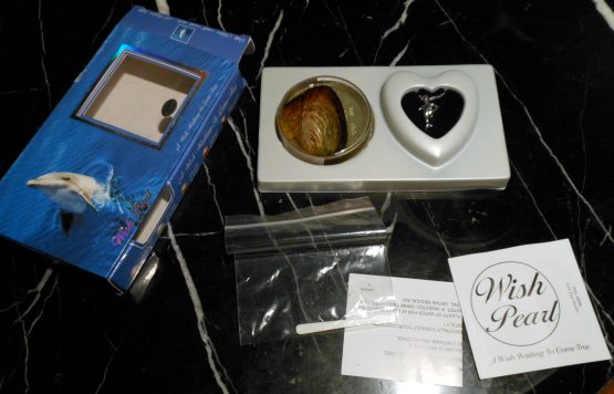 Hi, I am selling a, Guaranteed Authentic Sterling Silver Wish Pearl 18″ Dolphin Necklace by Lucoral & Lupearl, In New Condition. This is from “Lucoral & Lupearl”, the original “STERLING SILVER WISH PEARL HEART SHAPED 18″ NECKLACE”. Graced by the earliest of Greek Gods and throughout ancient and medieval history, pearls have been recognized as one of the most precious of divine gifts. They have possessed an aura of mystery and mystique for as long as mankind can remember. A “Wish Pearl” is a fascinating cultured pearl that takes a minimum of 3 to 5 years to develop within an impregnated mollusk. As each pearl must remain within the shell until opened by that very special person. Only then will it reveal its unique beauty and color. Pendant locket measures approximately 3/4″L x 1″W, attached to a sterling silver 18″chain length with dolphin enclosure(Stamped 925). The condition is new, only the box has some damage, it was never opened or used. Please look at all the pictures.