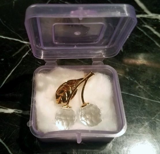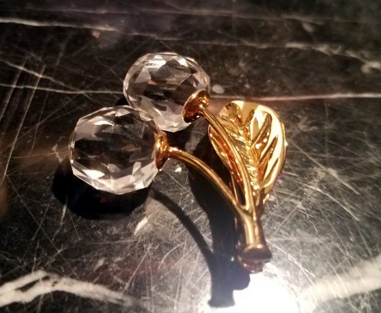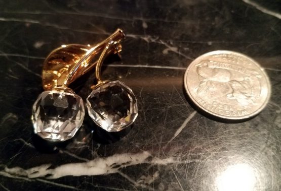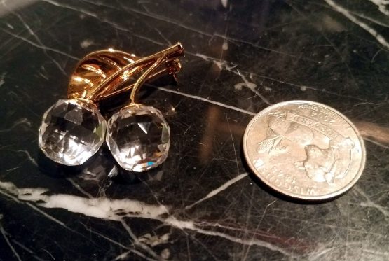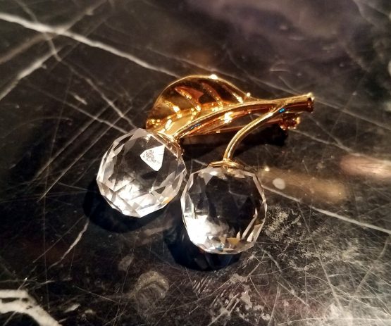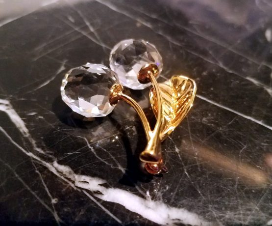 Hi, I am selling a, Guaranteed Authentic Swarovski Crystal Cherry Pin Label Brooch Gold Tone Classic Retired, In Excellent Condition. This is a gorgeous Swarovski cherry motive brooch, with two large faceted crystals, in gold tone, signed, with all the Swarovski hallmark markings. Approximate size: 1 x 1.25 inches The bracelet comes with a gift box. The condition is in excellent, like brand-new, and looks beautiful. Please look at all the pictures.