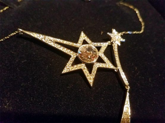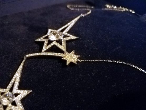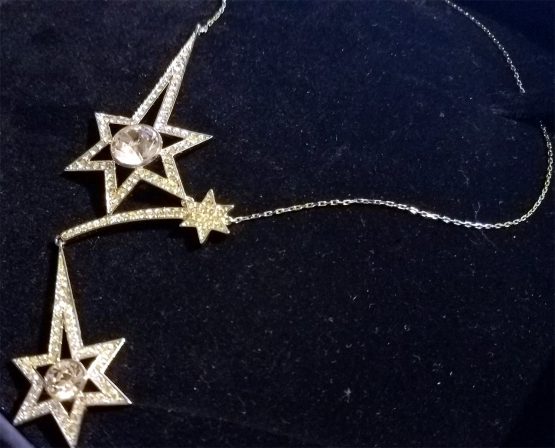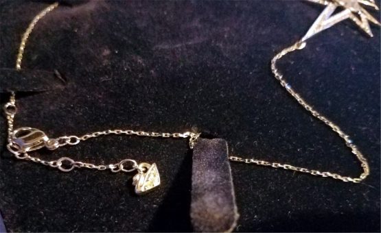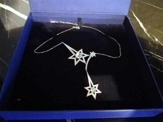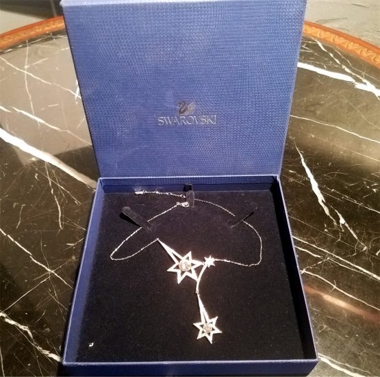 Hi, I am selling a, Guaranteed Authentic Swarovski Shooting Star Sparkling Crystal Necklace Pendant, In Excellent Condition. This is a very cute Swarovski with a Shooting Star Pendant, which is really sparkling, made in Austria, and has all the Swarovski hallmark markings. The Necklace Chain Is 16” Long, and the pendant is about 4” long (all), and 1.5” wide, comes with the original Swarovski gift box. The condition is in excellent, no wear or anything wrong with it, looks basically brand-new, and is beautiful. Please look at all the pictures.