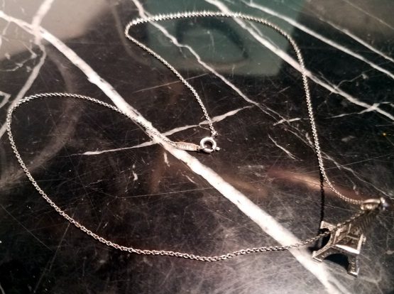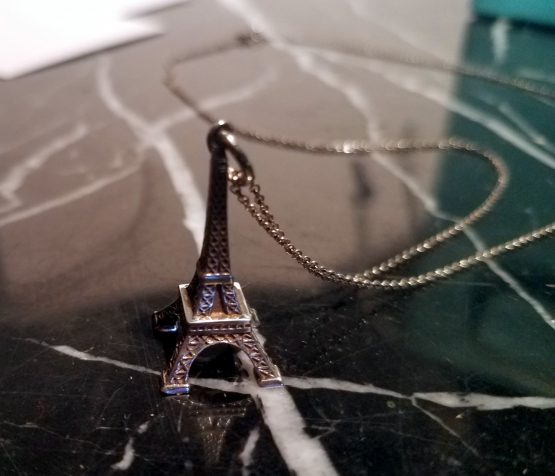 Hi, I am selling a, Guaranteed Authentic Tiffany & Co. 925 Sterling Silver Eiffel Tower Charm Chain Necklace, In Excellent Condition. This is a rare Tiffany & Co. necklace with the Eiffel Tower charm, with all the hallmarks. The charm is beautifully crafted, with a lot of detail, and the Tiffany & Co. 1837 markings inside. The length of the chain is 17 inches and the charm is 1 inch by 0.5 inches. The Tiffany necklace and charm comes with the gift bag, card and pouch. The condition is excellent, basically brand-new, no damages, chips or scratches or anything wrong with it. Please look at all the pictures.