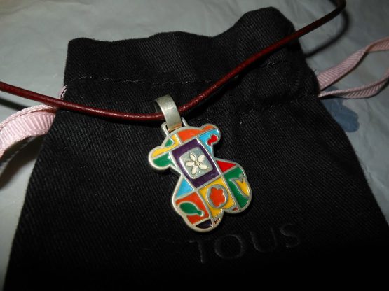 Authentic Tous Sterling Silver 925 Rare Teddy Bear Shape Multi Color Pendant