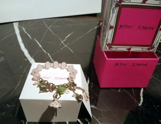 Hi, I am selling a, Guaranteed Authentic Betsey Johnson Authentic Pinktina Two-Tone Ballerina Multi-Charm Bracelet NWT, In New Condition. This is a beautiful authentic Betsey Johnson bracelet, with a dancing ballerina, ballet slippers and several other cute charms, accented with pink crystals, in gold-tone color. The condition is new with gift box, looks really nice and shiny, no damages, or tarnish. Please look at all the pictures.