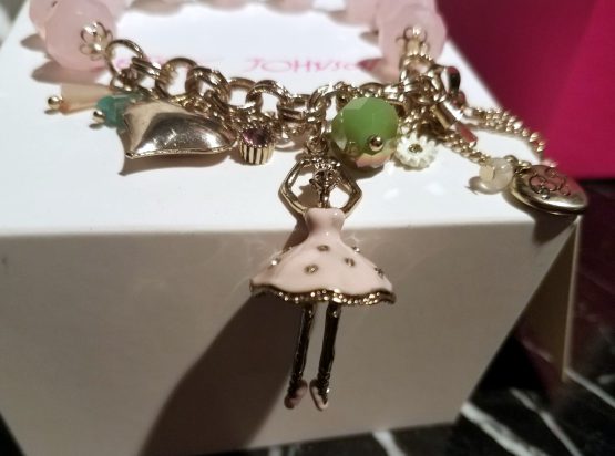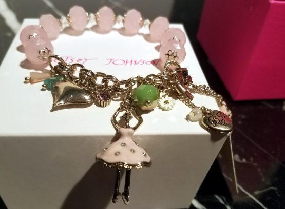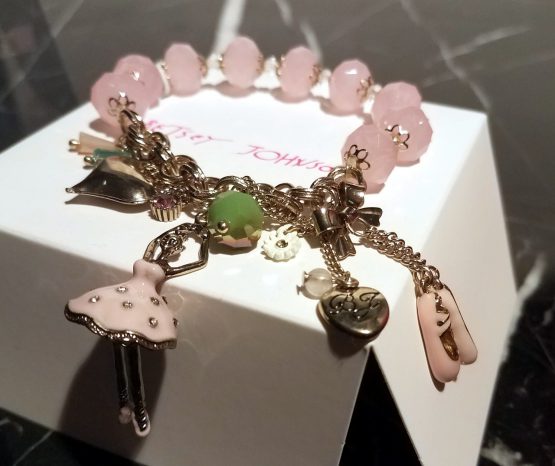 Betsey Johnson Authentic Pinktina Two-Tone Ballerina Multi-Charm Bracelet NWT