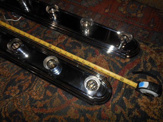 Hi, I am selling Guaranteed Working Chrome Vanity Six-Light Bathroom Fixtures 36 inches, In Excellent Condition. These are four Chrome Six-Light Fixtures for a Bathroom Vanity, measuring 36 inches. I sell one for $30 or all two for $50, they are from Lowe’s, and retail each for $45.  Please look at all the pictures .