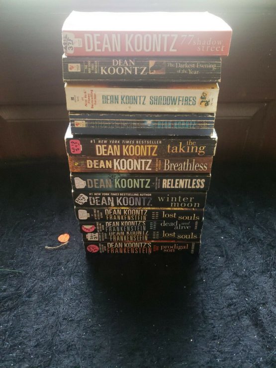 Hi, I am selling Guaranteed Authentic Dean Koontz Suspense Thrillers Horror Fantasy Mystery 12 Book Lot, In Excellent Condition. This is a medium size book lot, with twelve books, by author Dean Koontz, known for writing stories about suspense thrillers, horror, fantasy, science fiction and mystery. Please look at all the pictures.
