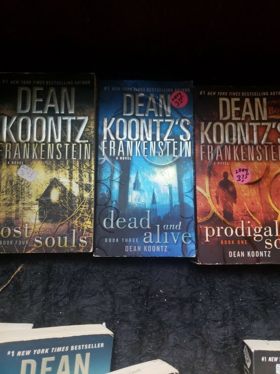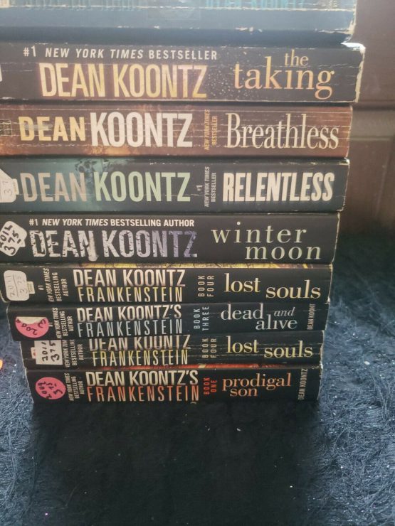 Book Titles: Darkest Evening of the Year, Winter Moon, Relentless, The Taking, Shadow Fires, Seize The Night, 77 Shadow Street, Breathless, Frankenstein: Lost Soul(x2), Dead and Alive, Prodigal Son