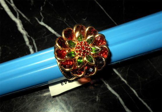 Evine Spinner Gold Plated Sterling Silver Women Flower Ring Gemstones Size 8.5 NWT