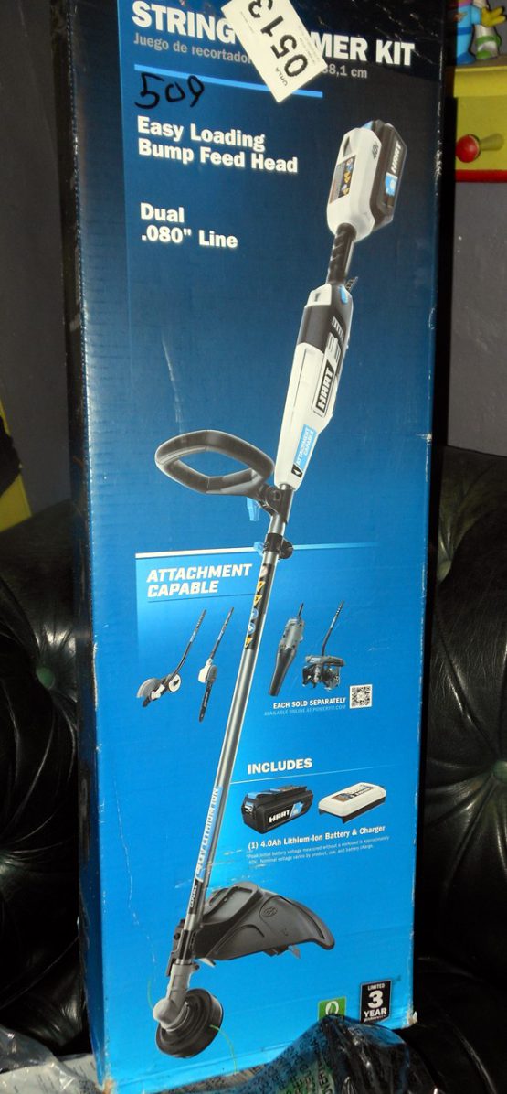 Hi, I am selling Guaranteed As Described, Hart 40v Cordless System 15 String Trimmer Kit Tool Only Open Box, In Excellent Vintage Condition. This is a battery power tool by Hart. The Hart Trimmer is considered brand-new, it is just the box that is damaged. Please look at all the pictures.