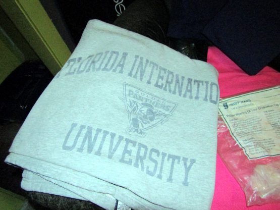 Hi, I am selling Guaranteed As Described, Huge Collectible Florida International University FIU Clothing Flag Gown Portfolio Lot, In Excellent Condition. This Huge Collectible Florida International University FIU Clothing Flag Gown Portfolio Lot will make a perfect addition to any fan’s collection. It contains about 13 items, an impressive selection of clothing, flags and gowns from the famous FIU school, which is a Division I institution and member of the NCAA. This collection includes an assortment of items including a robe, jacket, sweater, a flag, scarf, gown and hat. Each item is officially licensed by FIU and comes with the FIU logo front and center.