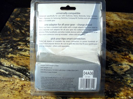 Hi, I am selling a, Guaranteed Working iGo 23-1401 UNIVERSAL AC TRAVEL WALL ADAPTER CHARGER NEW in Box, never used in box, is in really very good condition. See all pictures for details and message me for any question.