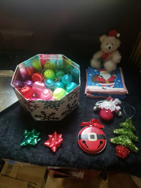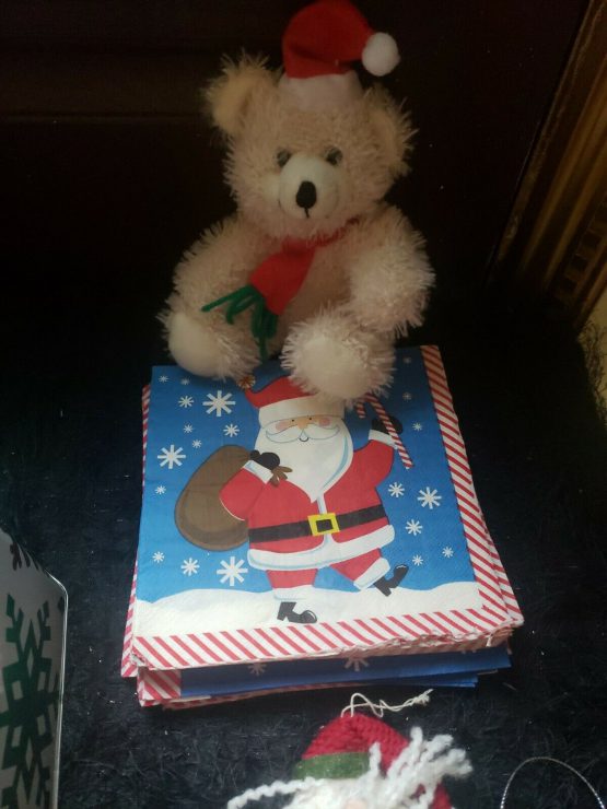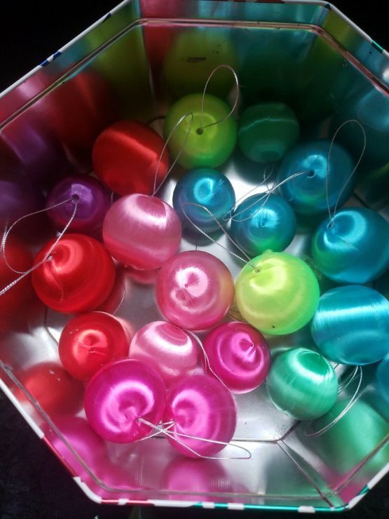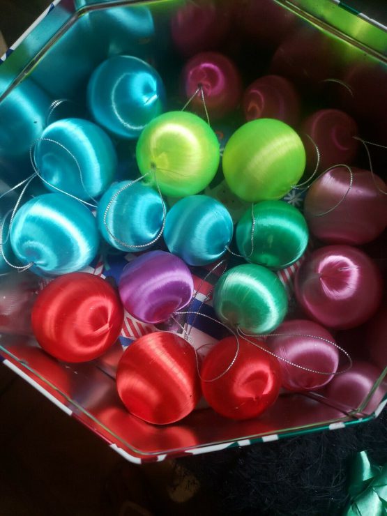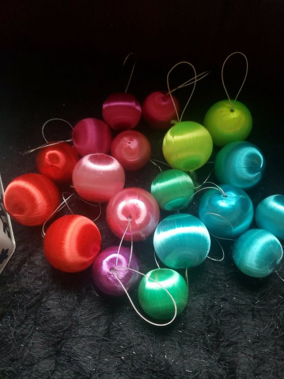Hi, I am selling Guaranteed Authentic Large 21+ Multi Color Christmas Silk Balls Holiday Ornaments Medium & Small, In Excellent Condition. This is Christmas Ornaments Silk balls lot. I have a lot of silk Christmas balls 21 in total, beautiful colors, turquoise, lime green, light pink, fuchsia, purple, and red. Only a few are little frayed otherwise great condition. I also included a bunch of Christmas Santa Claus napkins, which are brand new and a Teddy bear with a Santa hat and a beautiful Christmas tree ornament, also a Santa Claus ornament. Included further are two bows, and lastly a metal bell that is a Christmas Santa ornament that has a bell that makes noise. I have many Christmas items for sale and I do combine lots. Please look at all my other items, and this lot includes a beautiful Christmas metal box as well. Please look at my all Christmas store listings, I do combined shipping and offers on everything. Please look at all the pictures.