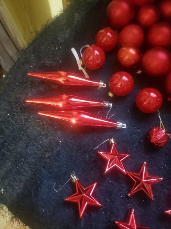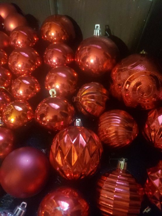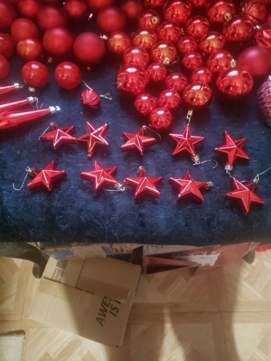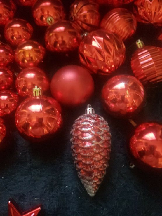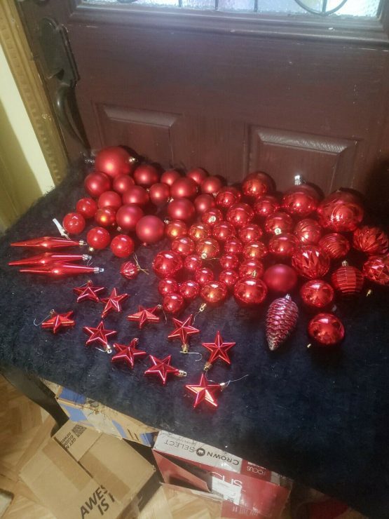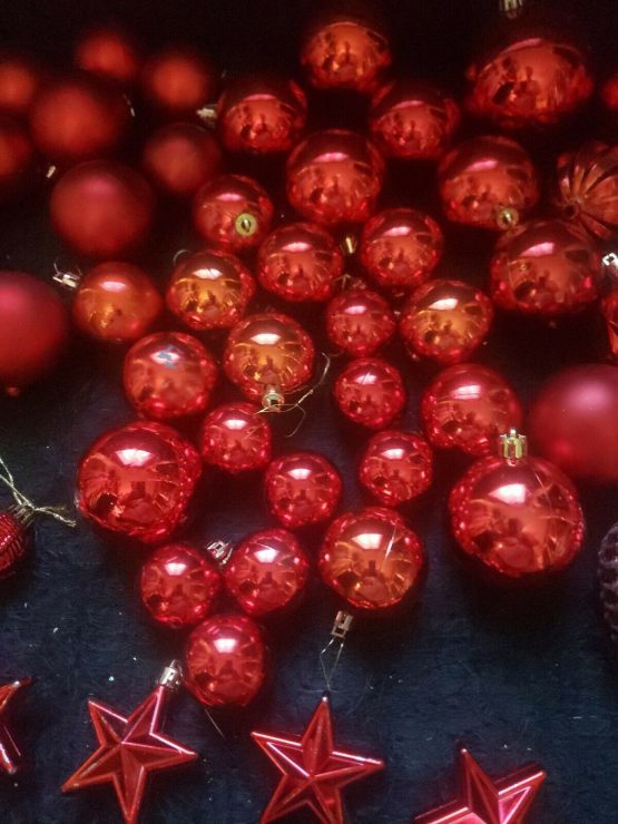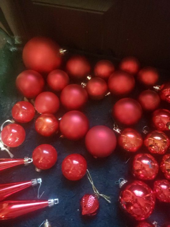 Hi, I am selling Guaranteed Authentic Large Lot 73+ Red Shiny + Matt Colored Christmas Holiday Ornaments Medium & Small Balls, In Excellent Condition. This is a large Red Christmas Ornament Lot. A lot of 73 Christmas balls, red in color, shiny red and Matt. Including some stars and acorn and chandelier types and special ones as well. Only a couple are missing the top part which can be easily replaced, and some discoloring or shininess came off, otherwise a really pretty lot. Please look at my all Christmas store listings, I do combined shipping and offers on everything. Please look at all the pictures.