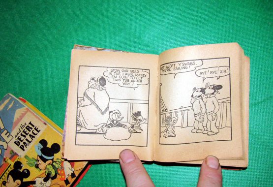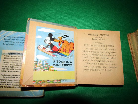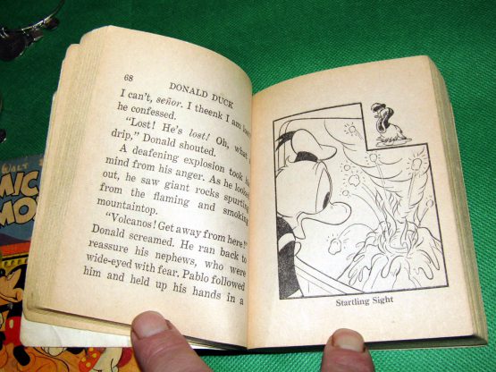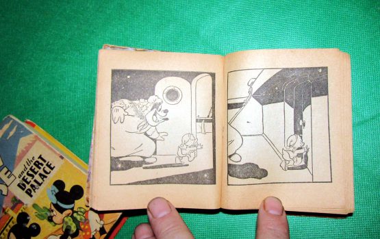 Book titles: Donald Duck in Volcano Valley 1973, Mickey Mouse and the Desert Palace 1948, Donald Duck and Ghost Morgan’s Treasure 1946