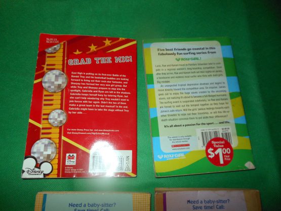 Book titles: High School Musical – Battle for the Bands, Weather or Not, The Baby Sitters Club – Stacey’s Choice and Stacey’s Broken Heart