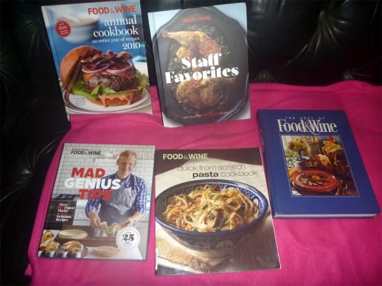 Book titles: Food & Wine Annual Cookbook 2010, Food & Wine Staff Favorites, Food & Wine Mad Genius Tips, Food & Wine Quick From Scratch Pasta Cookbook, The Best Of Food & Wine