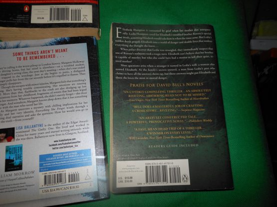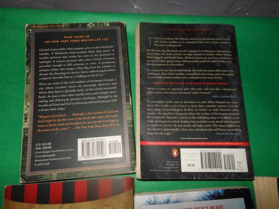 Hi, I am selling Guaranteed As Described, Lot 5 Books Vintage Mystery Thriller Horror Berendt Hannah Bell Gruen Ballantyne, In Excellent Condition. This is a lot of 5 books by John Berendt, Sophie Hannah, David Bell, Sara Gruen, and Lisa Ballantyne, vintage paperback, and hardcover. The books are in excellent vintage condition, some rough corners, no torn or missing pages, or writing. Please look at all the pictures.