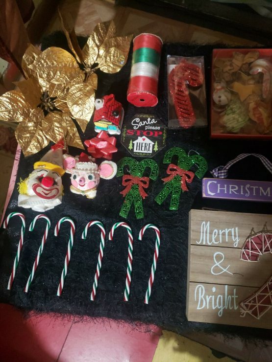 Lot of 20+ Christmas decorations Candy Cane Ribbon Ornaments and Many More Items