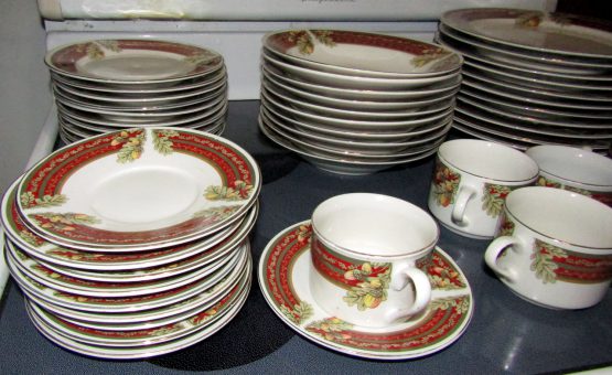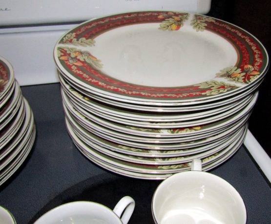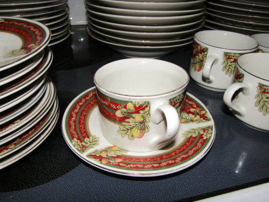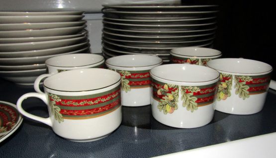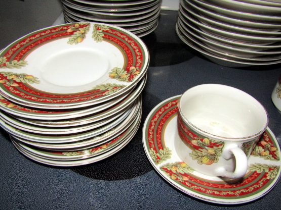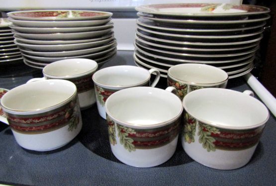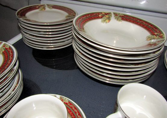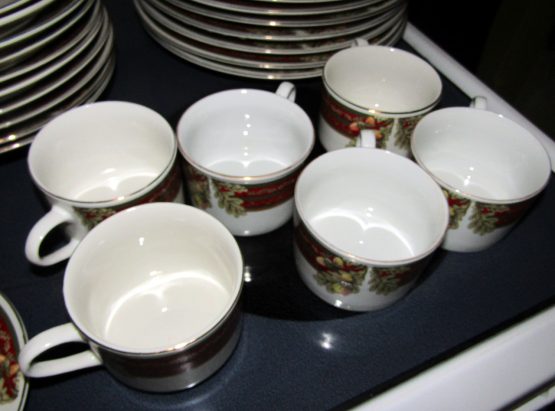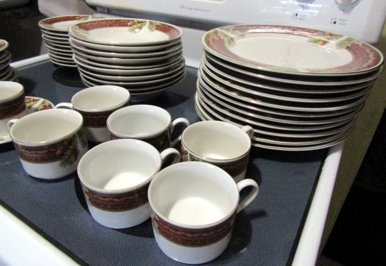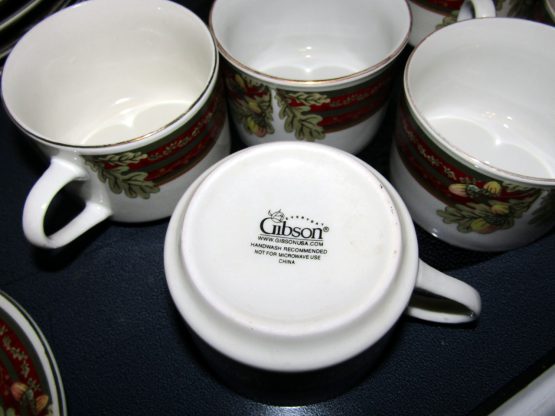 Hi, I am selling Guaranteed As Described, Lot of 48 Gibson Dining Set Dishes Cups Saucers Porcelain Floral Christmas Themed, In Excellent Condition. This is a lot of 48 dishes, Christmas themed, with floral decoration, and a red Christmas styled rim. This set includes 10 saucers for the 7 mugs, 10 small plates, 10 medium soup plates, and 10 large dinner plates, total 48 dishes. The Dining set is perfect for any Christmas themed dinner occasion.