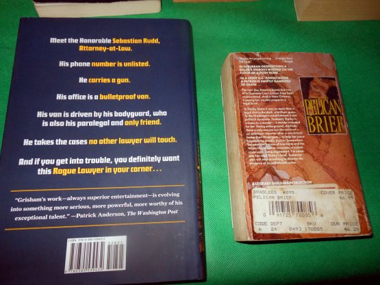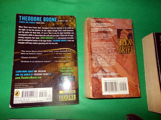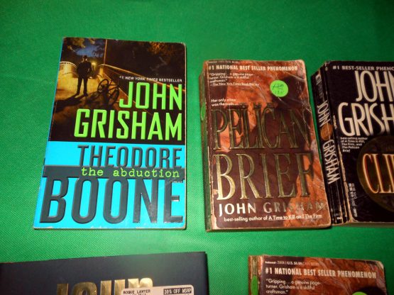 Book titles: Pelican Brief x2, Client, Rogue Lawyer, Theodore Boone The Abduction