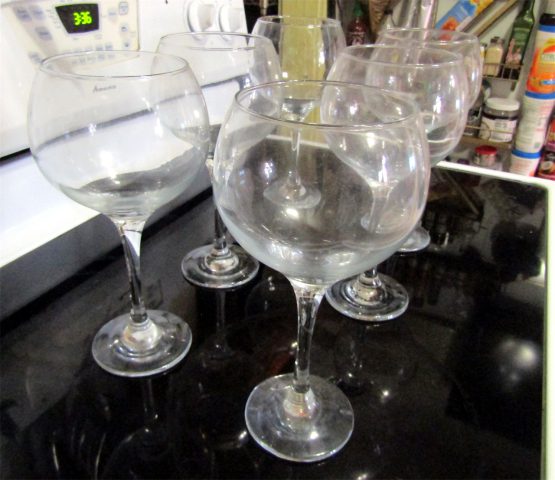Lot of 6 Beautiful Tall Large Round Wine Drinking Glasses Clear Simple