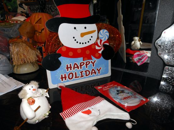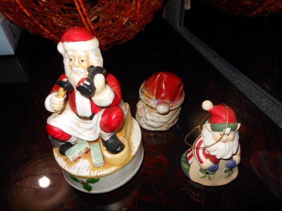 Hi, I am selling a, Guaranteed Authentic Lot of 8 Christmas Decor Santa Snowman Hat Ornament Toy Puzzle Misc, In Excellent Condition. This is a nice lot of 8 different Christmas themed items, there is a Santa Claus Decor, stands up display “happy holidays”, a Snowman game of metal balls, Snowman hat, Snowman plush figurine, a Christmas advent puzzle, a ceramic Santa Claus figurine with music, a ceramic Santa Claus Ornament, and a Santa Claus trinket box. The condition overall is excellent, no damages, or missing items, all works, is clean and nice. Please look at all the pictures.