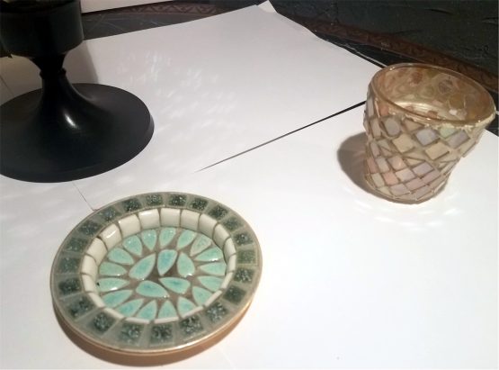 Tags: Candle Holder, Collectible, Copper, Cup, Glass, House Decor, Made in Japan, Mosaic, Multi-Color, Plate, Vintage