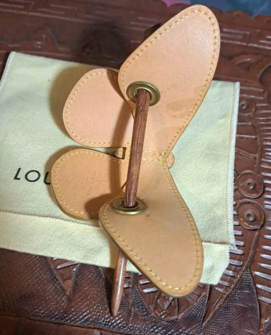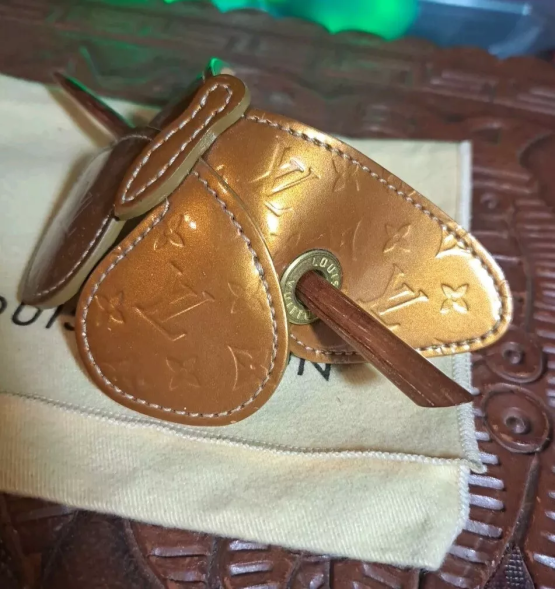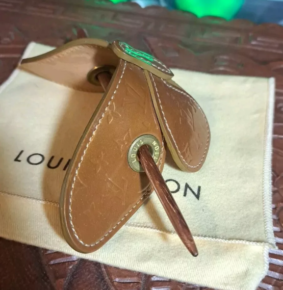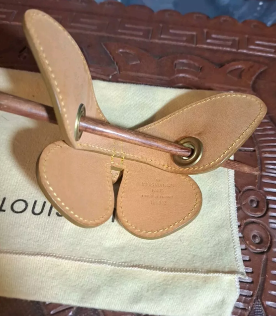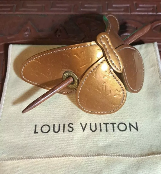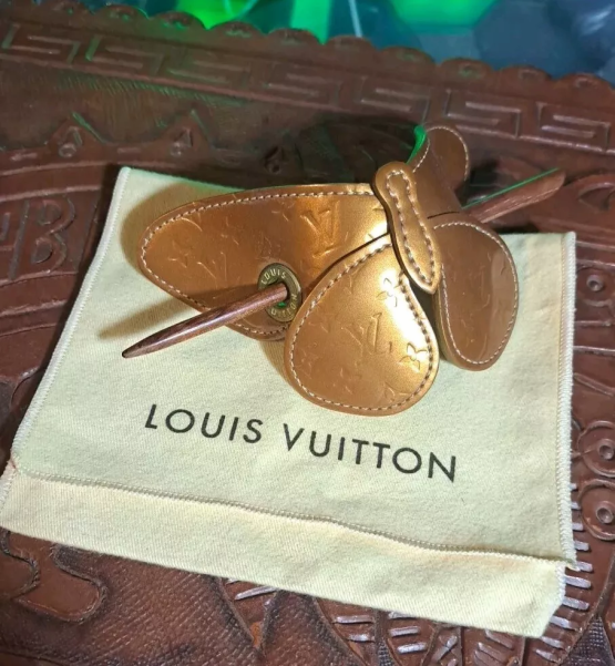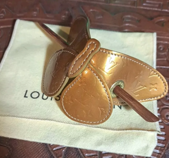 Add a touch of elegance to your hair with this beautiful Louis Vuitton Butterfly Shaped Hairpin. Crafted with high-quality wood, leather, and canvas, this hairpin is the perfect accessory for any occasion. The classic brown color of the butterfly shape adds a timeless touch to any outfit. This hairpin is perfect for women who appreciate the finer things in life and want to add a touch of luxury to their hair.