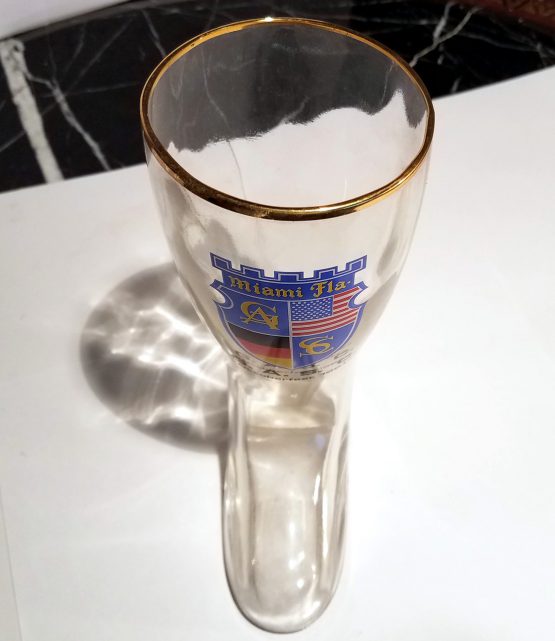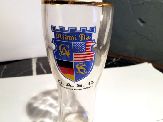 Hi, I am selling a, Guaranteed Authentic Oktoberfest 1981 Miami, Fla. G.A.S.C. Gold Rim Vintage Collectible Boot Beer Mug, in Excellent Condition. this is a real rare find, from 1981 Oktoberfest Miami, Fla. G.A.S.C. a vintage gold rim boot beer mug. This item would add a distinctive accent to anyone, who shares interest in beer mug collectibles. The glass measures approx. 7-1/2” Height by 5” Wide, and 3-1/4” Deep. The condition of glass is really excellent, it has no damages, chips or cracks, it has a little wear on the gold on the rim which is minimal, and has been used as display only. Please look at all the pictures.