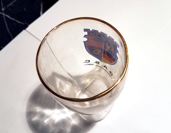 The condition of glass is really excellent, it has no damages, chips or cracks, it has a little wear on the gold on the rim which is minimal, and has been used as display only.