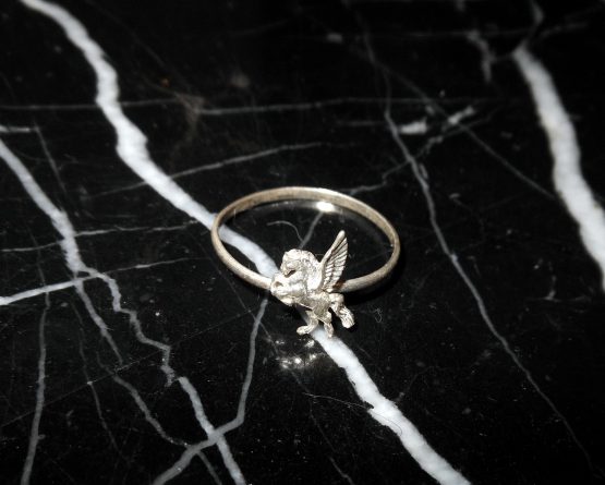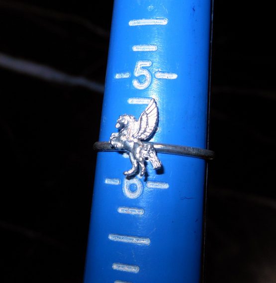 Hi, I am selling a, Guaranteed Authentic Pegasus Winged Standing Horse Greek Mythology Fantasy Sterling Silver Women Ring Size 5.5, In Excellent Condition. This is a really cute ring with a Pegasus attached to it, in a standing fashion, a fantasy theme from the Greek mythology, very well made, and nicely detailed, the material was tested sterling silver, but has no markings. The size is 5.5. The condition of the Pegasus ring is excellent, no damages, and really look great. Please look at all the pictures.
