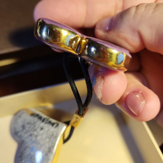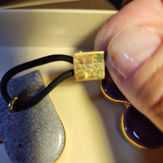 This is an authentic very rare LOUIS VUITTON Stephen Sprouse hair tie, with a white stone with silver veins enamel heart, with floral shaped purple enamel piece. Louis Vuitton enamel ceramic ponytail holder made by Steven Sprouse is a very rare collector’s peace, no flaws, no chips in excellent condition. Looks unworn, comes with certificate of authenticity, it is signed made in France. A great collector’s piece for any Louis Vuitton lover, purple flower with silver veined graffiti styled white heart. This beautiful Louis Vuitton bracelet is lightly used and well taken care of. Comes with a Louis Vuitton box.