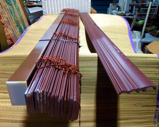 Hi, I am selling Guaranteed Working Roll Up 51×2 Inches Office Blinds Red Brown Plastic Vinyl, In Excellent Condition. This is for Roll Up Vinyl Office Blinds, 51 inches long by 2 inches wide. Please look at all the pictures.
