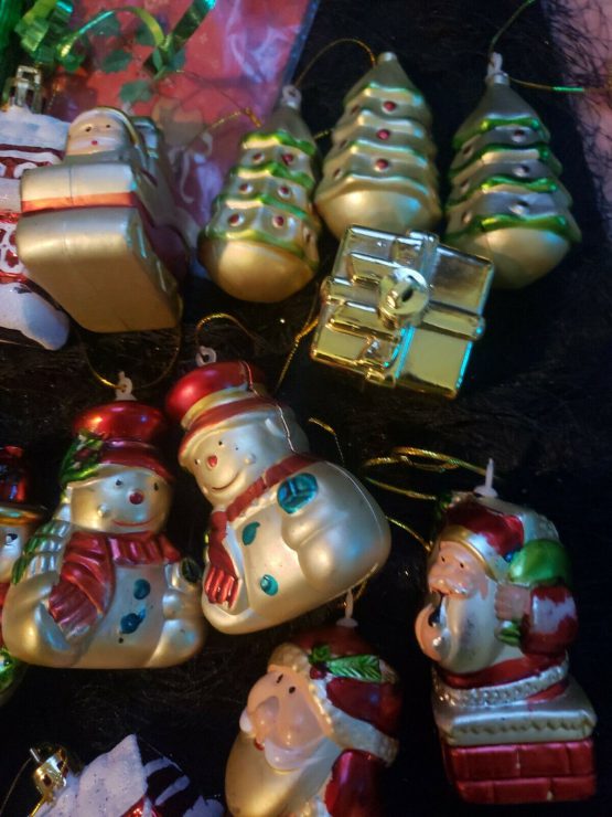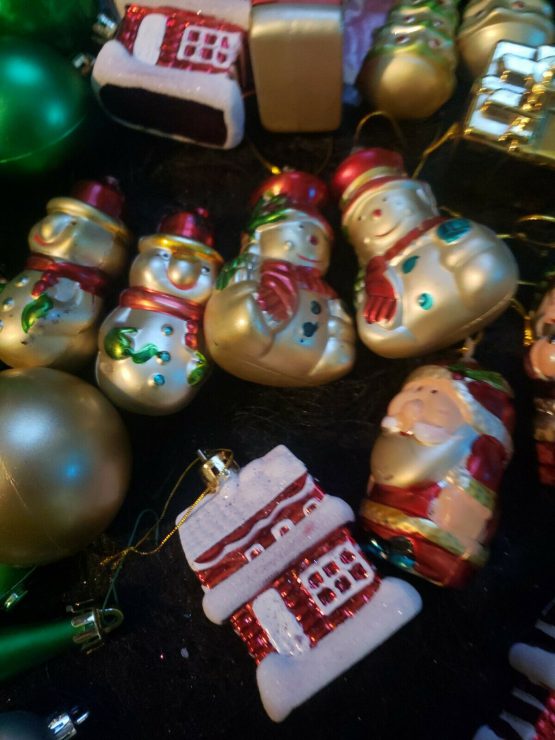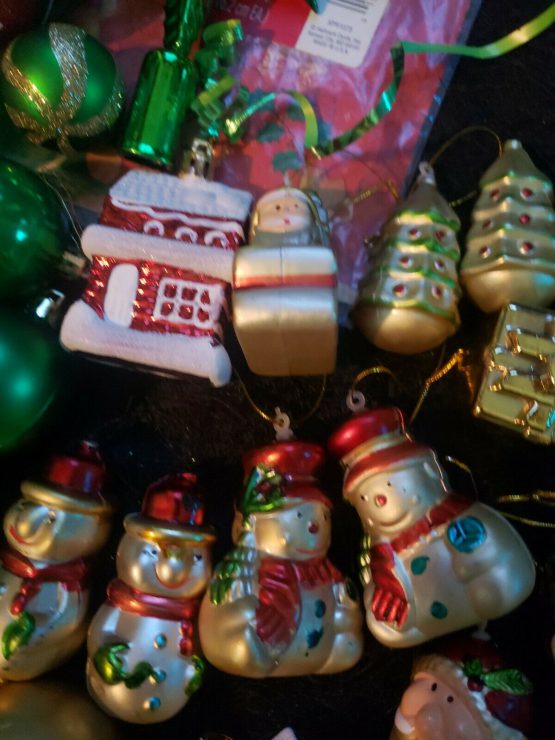 Hi, I am selling Guaranteed Authentic Santa Claus Christmas Decorations Big 60 Lot Items Green Shiny Ornaments Glitter, In Excellent Condition. This is a lot of over 60+ items, Santa Claus Christmas decorations and more. Condition is Used. I have a beautiful Christmas lot that includes gold Santa Claus snow man pieces, what’s included is for snow man to Santa Claus, one Santa Claus slay, 3 little Christmas trees, 3 houses, and a gold Box. Also a green Christmas topper and some green ribbon, and I also included a Christmas bear wrapping paper, which is new. Also handmade jeweled piece for your Christmas tree and a bunch of swirly Christmas ornaments, and a lot of the Christmas green balls that are glittered and new looking. Also, including a best mom ever, and a brass joy Christmas ornament that says peace on it, as well as for jingle Bells. Great lot, real pretty and I will in be listing all my Christmas decorations. I do break up lots as well. Please keep checking my store I appreciate it, thank you.