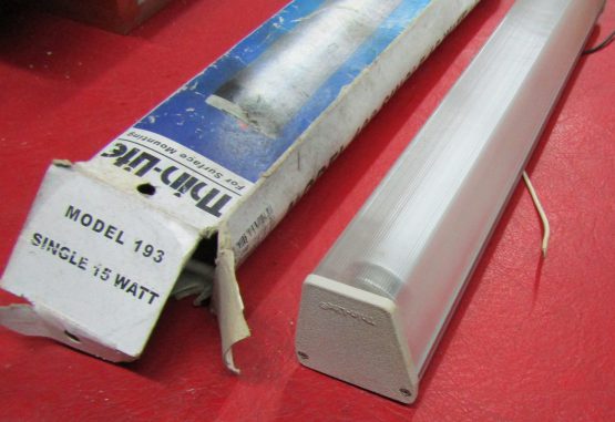 Hi, I am selling Guaranteed As Described, Thin-Lite Surface Mount Model 193 Single 15 Watt 12v Light Fluorescent Made in USA, In Good Condition. This is Surface Mount Model 193 Single 15 Watt 12v Light Fluorescent Made in USA. The condition is excellent, working, has a chip on the plastic glass. Please look at all the pictures.