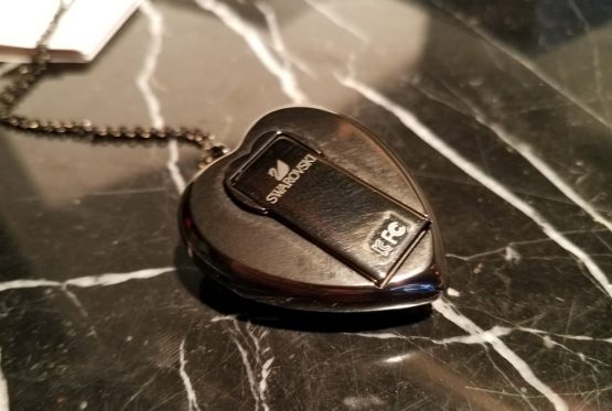 Hi, I am selling a, Guaranteed Authentic Swarovski Active Crystals Silver Gunmetal Night Heart 8GB USB Pendant Necklace, In Excellent Condition. This is a beautiful Swarovski Crystal Heart charm and necklace, with all the Swarovski hallmark markings. The Swarovski Charm and Necklace comes with the gift box. The condition is excellent, no damages or anything almost brand-new. Please look at all the pictures.