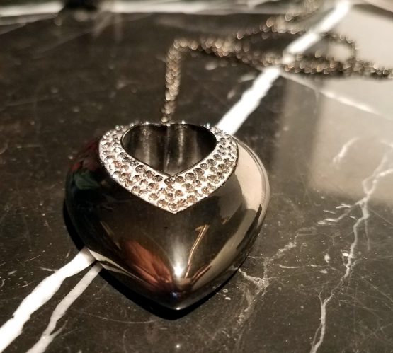 Features: Designed in Paris, this pendant features a heart shaped Silver Night crystal surrounded with crystal Pointiage ®. It has a removable 8GB USB thumb drive. Put love songs or photos and videos together as a great gift for Anniversary and Valentines. Chain is Approx. 31.5 inches in length. Pendant is Approx. 1 5/8″ L x 1 3/8″ W. Lobster clasp closure.
