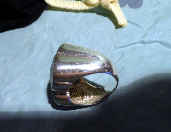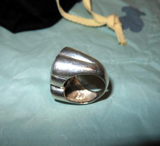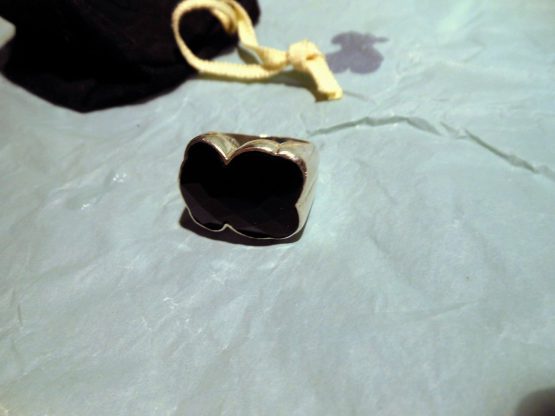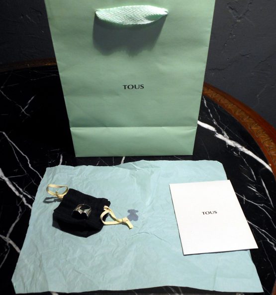 Hi, I am selling a, Guaranteed Authentic Tous Sterling Silver & Black Onyx Teddy Bear Women Ring Size 5.5 Rare, In Excellent Condition. This is a gorgeous sterling silver onyx ring, by Tous, a classic teddy bear design, it bears all the Tous markings. The ring measures about 3/4 inches long and 5/8 wide and is a size 5.5, total weight is 9 grams. Comes with the Tous dust bag, paper bag, and tag. The condition is excellent, very shiny, clean, has no visible tarnish or any damages, only minor surface scratches and looks great. Please look at all the pictures.