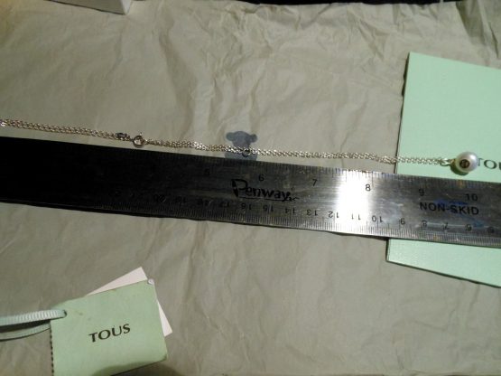 Hi, I am selling a, Guaranteed Authentic Tous Sweet Dolls Freshwater Cultured Pearl Sterling Silver Teddy Bear Pendant, In Excellent Condition. This is a gorgeous sterling silver necklace with silver teddy bear pearl pendant, by Tous, a from Sweet Dolls collection, it bears all the Tous markings. The necklace measures about 19 inches long. Comes with a Pandora box, Tous wrapping paper, tag and authenticity card. The condition is excellent, very shiny, clean, has no visible tarnish or any damages, only minor surface scratches and looks great, there is also minor discoloration right around the edge of the teddy bear. Please look at all the pictures.