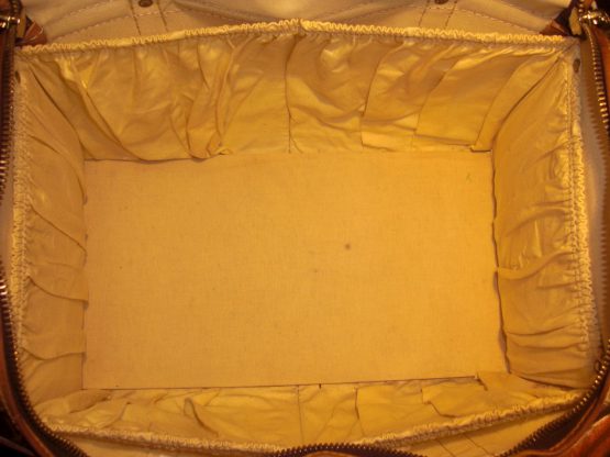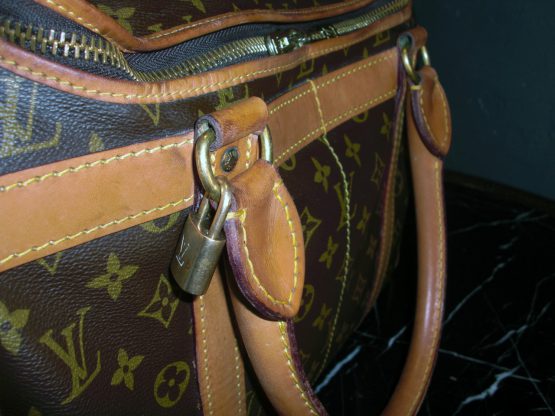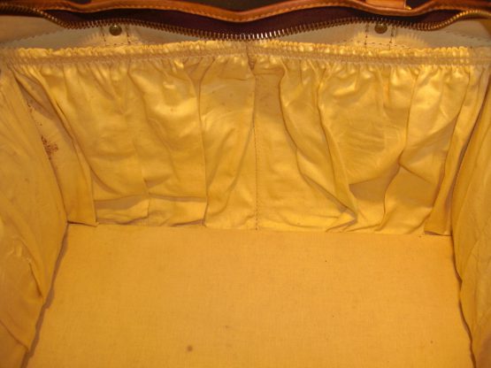 Hi, I am selling a, Guaranteed Authentic Vintage Louis Vuitton Luggage Shoe Travel Bag – No Longer Available, In Excellent Condition. This is really a gorgeous & rare piece of accessoire, made by Louis Vuitton, with excellent hand craftsmanship. This piece of luggage has 8 interior pockets to put, for example, shoes or keep things organized, with lots of room in the center for other things. The Louis Vuitton luggage measures 16″ wide, 12″ tall, and 8.5″ deep. Comes with the lock, but I do not have the key currently (Key code 320). The condition is excellent, it has no major damages, or stains, and is very clean. You can see in the pictures, it has a few interior spots, and some darkening on some of the leather. But I think overall a very nice piece of Luggage, in really excellent condition. Please look at all the pictures.