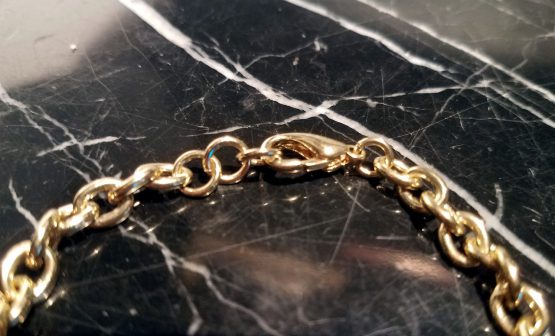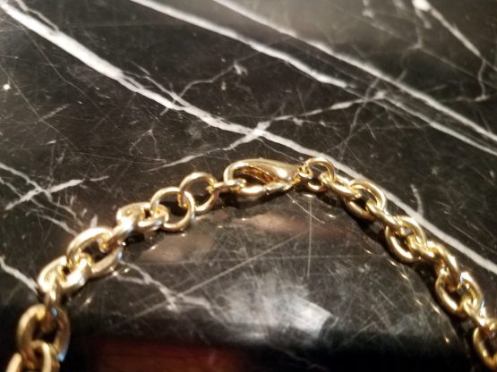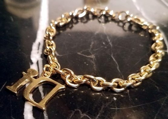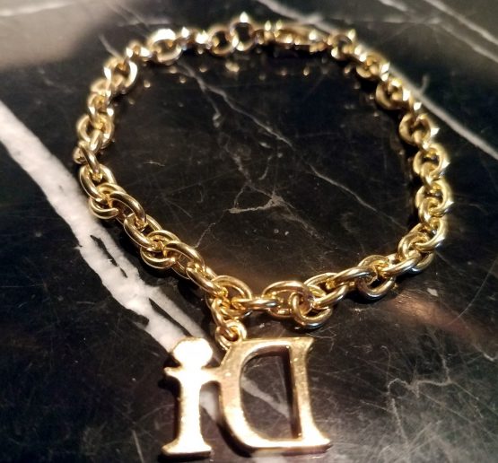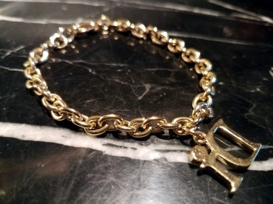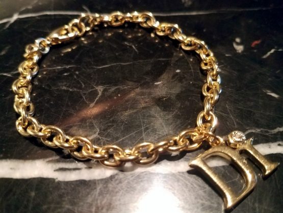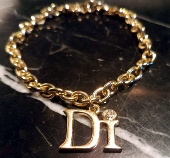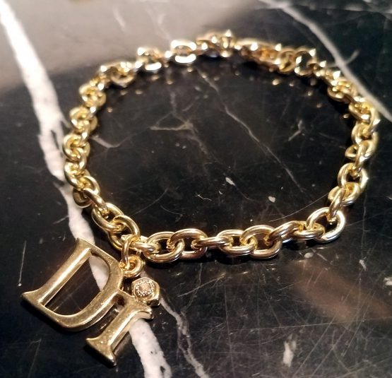 Hi, I am selling a, Guaranteed Authentic Vintage DI Diamond Chip Gold Tone Charm Bracelet Lobster Clasp Diamonds International, In Excellent Condition. This is a beautiful authentic vintage 1980s Di single charm with a diamond chip trace link gold tone bracelet with a lobster clasp. The bracelet is not signed, but the charm is the logo for the company Diamonds International. Charm measures 9/16″ by 3/4″, and the chain is 1/4″ wide thick gauge gold tone trace link chain which goes around 7.5″ clasped. The condition is excellent, looks really nice and shiny, no damages, or tarnish. Please look at all the pictures.