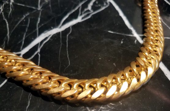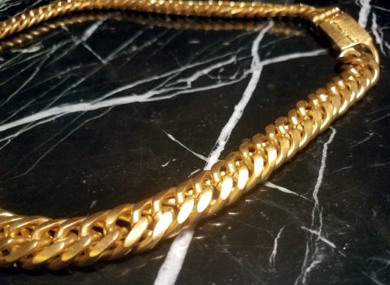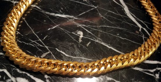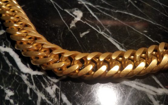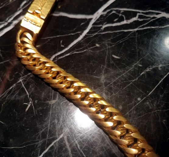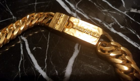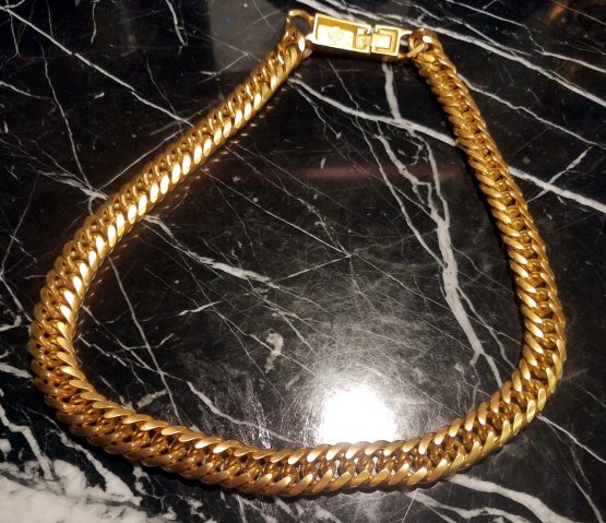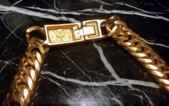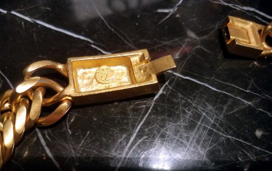 Hi, I am selling a, Guaranteed Authentic VTG KARL LAGERFELD CHANEL Designer LARGE Heavy Chunky Gold Chain Necklace Logo Clasp, In Excellent Condition. This is a absolutely amazing large heavy chain necklace by Karl Lagerfeld, he was the top designer for Chanel. His jewelry is classic and gorgeous, with fabulous detail.  This necklace is a rich, high quality heavy chain with extra-large slide clasp and his name “Karl Lagerfeld”. The measurements of the chain is 26″ inches long and weighs 244 grams. Comes with a Lord & Taylor bag, and a nice gift box (his designs where sold there). The condition is excellent looks great, gold is shiny, has no damages, and looks great. Please look at all the pictures.